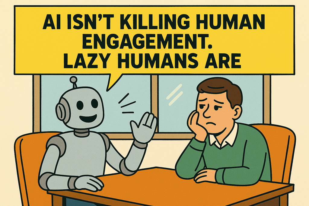 Yes, AI is changing how work gets done. No argument there. But the idea that AI is inherently killing human engagement misunderstands both technology and people. Tools don’t destroy relationships. Behaviour does.