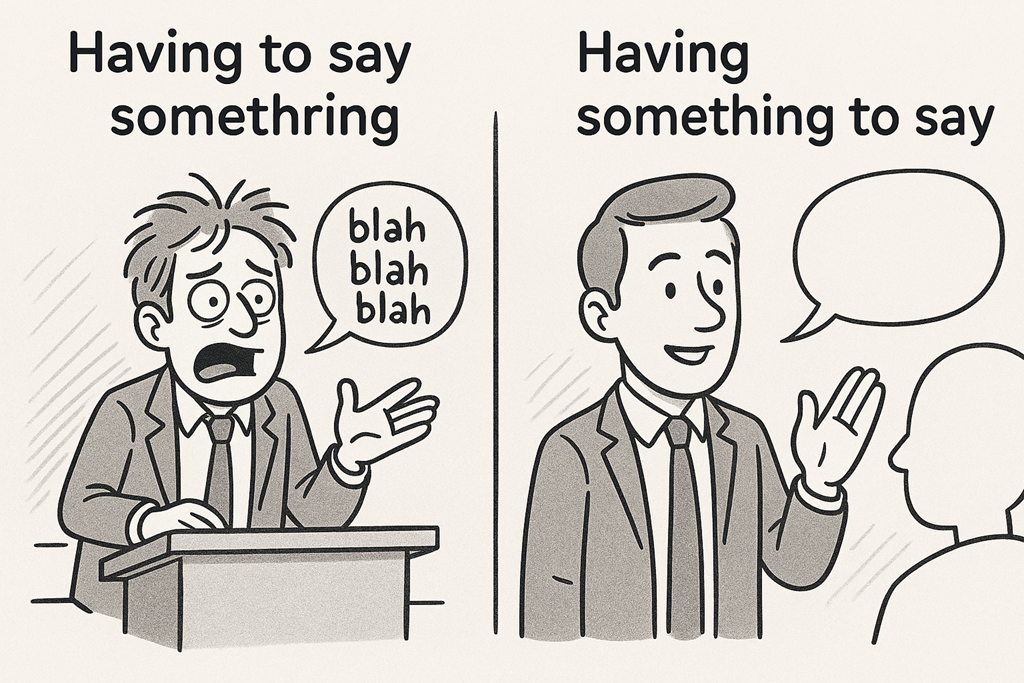 There’s a big difference between having to say something and having something to say.