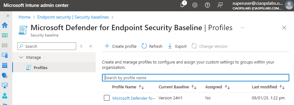Microsoft has updated the Defender for Endpoint Security Baseline policy in Intune to Version 24H1 as shown above.